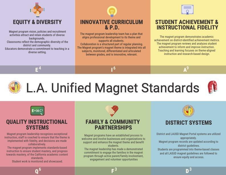 Los Angeles High School's Magnet program is based upon a Science, Technology, Engineering, Arts, and Mathematics (STEAM) theme. An interdisciplinary program that addresses real-world problems through a standards-focused and inquiry-based curriculum, the STEAM Magnet is geared to the student’s interest in science, computer technology, graphic design, and mathematics.